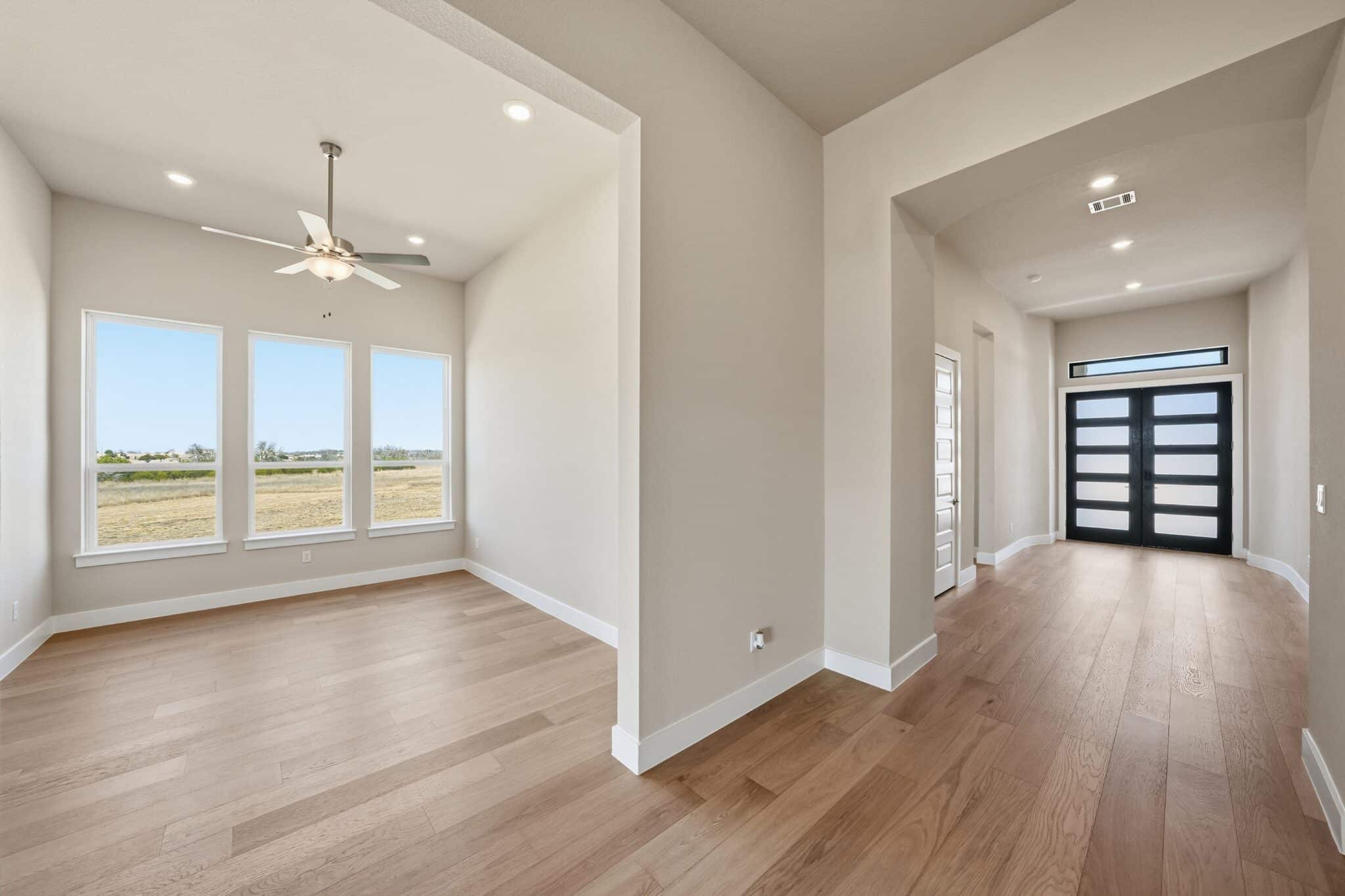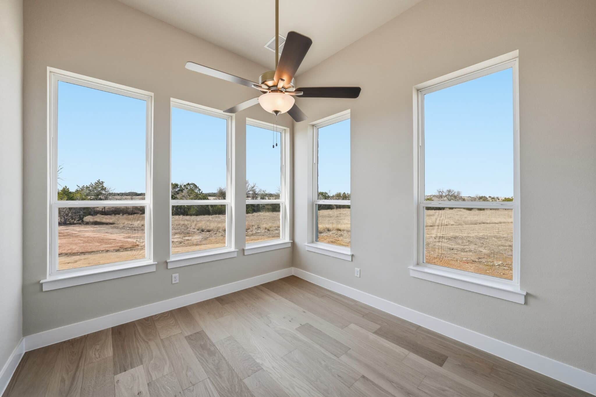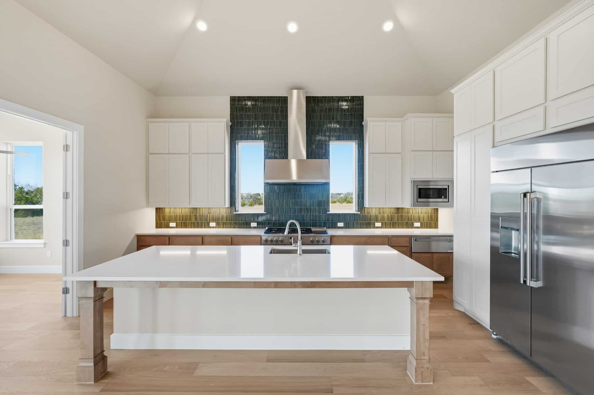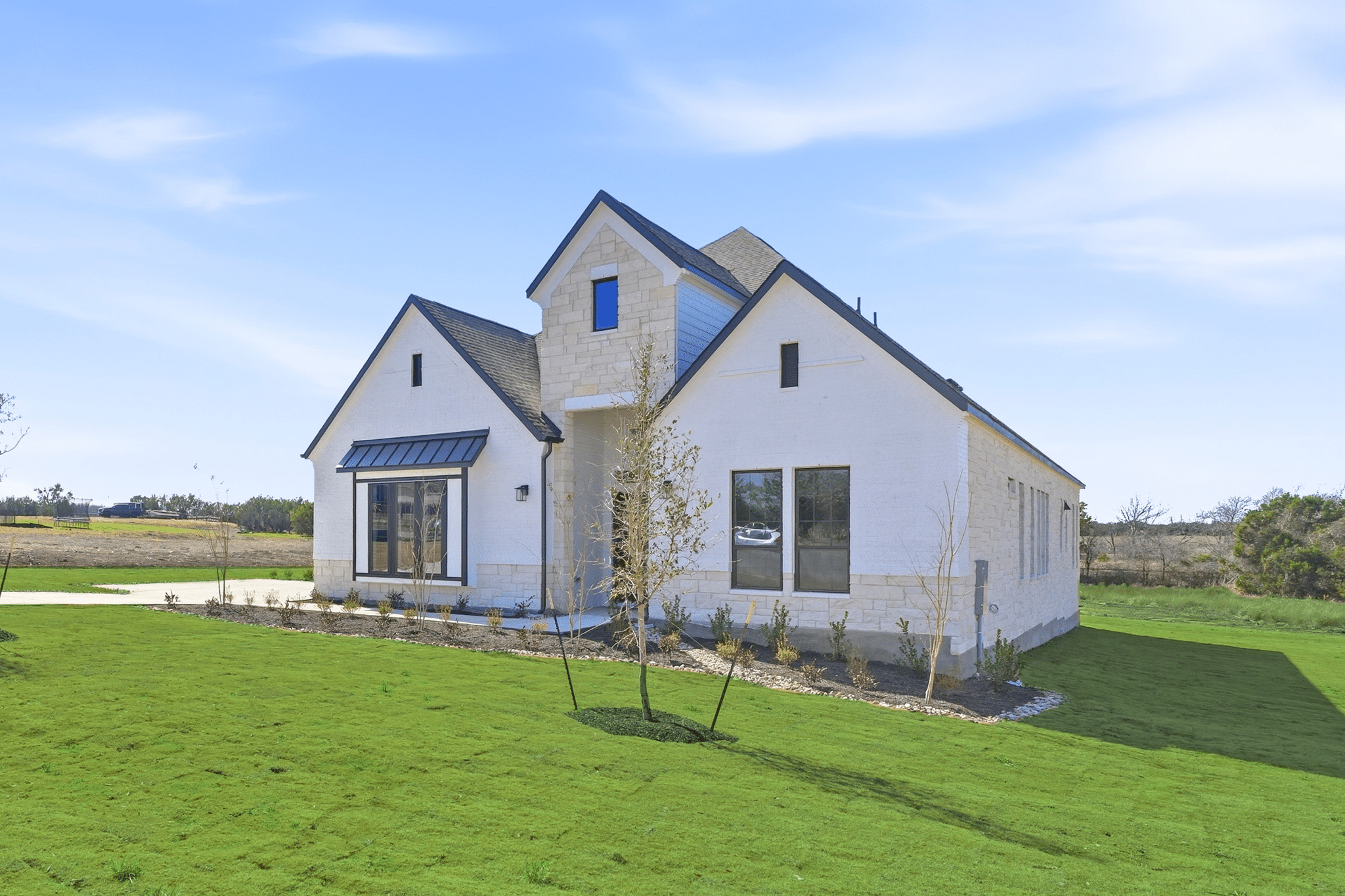 Welcome to GFO Home’s premier Bluebonnet Floor Plan from our brand new Feathergrass exclusive Lone Star Series. This elegant and expansive One-Story home features 4,046 sf, sits on a scenic One-Acre, and offers spacious living with 4 Bedrooms, 3.5 Bathrooms, and 3-Car Garage. Highlights of this grand home include an Open Grand Family Room with an Electric Fireplace and soaring Ceilings, 15’ ft 3-Panel luxury Glass Slider Doors leading to a large Covered Patio with Gas Drop for future grill, perfect for entertaining. Indulge in the Luxury Gourmet Chef’s Kitchen with large center island, stunning GE Cafe Series Appliances including a Cafe 48” – 6 Burner with Griddle Gas Range and Double Ovens, Cafe Warming Drawer, and huge built-in stainless steel side by side refrigerator/freezer & oversized Walk-In Pantry, and attached Breakfast Room. Enjoy a Private Study or Bonus Room, Formal Dining Room for gatherings, a separate Media Room for entertainment, and Laundry Room with Built-in Cabinets Upper & Lower cabinets and sink with decorative tile and garage entrance. Relax in the spacious & luxurious Primary Bedroom, looking out to the scenic backyard with an Upgraded Spa-inspired Primary Bathroom featuring his and hers Walk-in Closets, a designer Free-Standing Soaking tub, and Large Walk-In Frameless Glass Shower with bench seat. With 3 more additional bedrooms, 2 more full bathrooms, & Powder Room, this remarkable Bluebonnet Home by GFO Home will have you experiencing high-end living at its finest, in the new luxury Feathergrass Acreage Community. Enjoy the small-town charm of Georgetown, with it’s Historic Downtown voted Texas’ Most Beautiful Town Square. There is so much to explore with lovely restaurants, shops and regular. Minutes away from local conveniences like the brand new HEB now open in Parmer Center, schools, Lake Georgetown, and more! Zoned to Georgetown ISD with top rated Ford Elementary, Benold Middle School, and Georgetown High School. Visit the GFO Feathergrass Model Today!